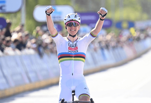 Tadej Pogačar vandt sin anden Flandern Rundt i en fantastisk solopræstation ved Flandern Rundt 2025, iført UAE Team Emirates cykeltøj. Han lancerede et dødbringende angreb på Oude Kwaremont, efterlod alle modstandere og kørte alene i 19 kilometer for at vinde mesterskabet.
